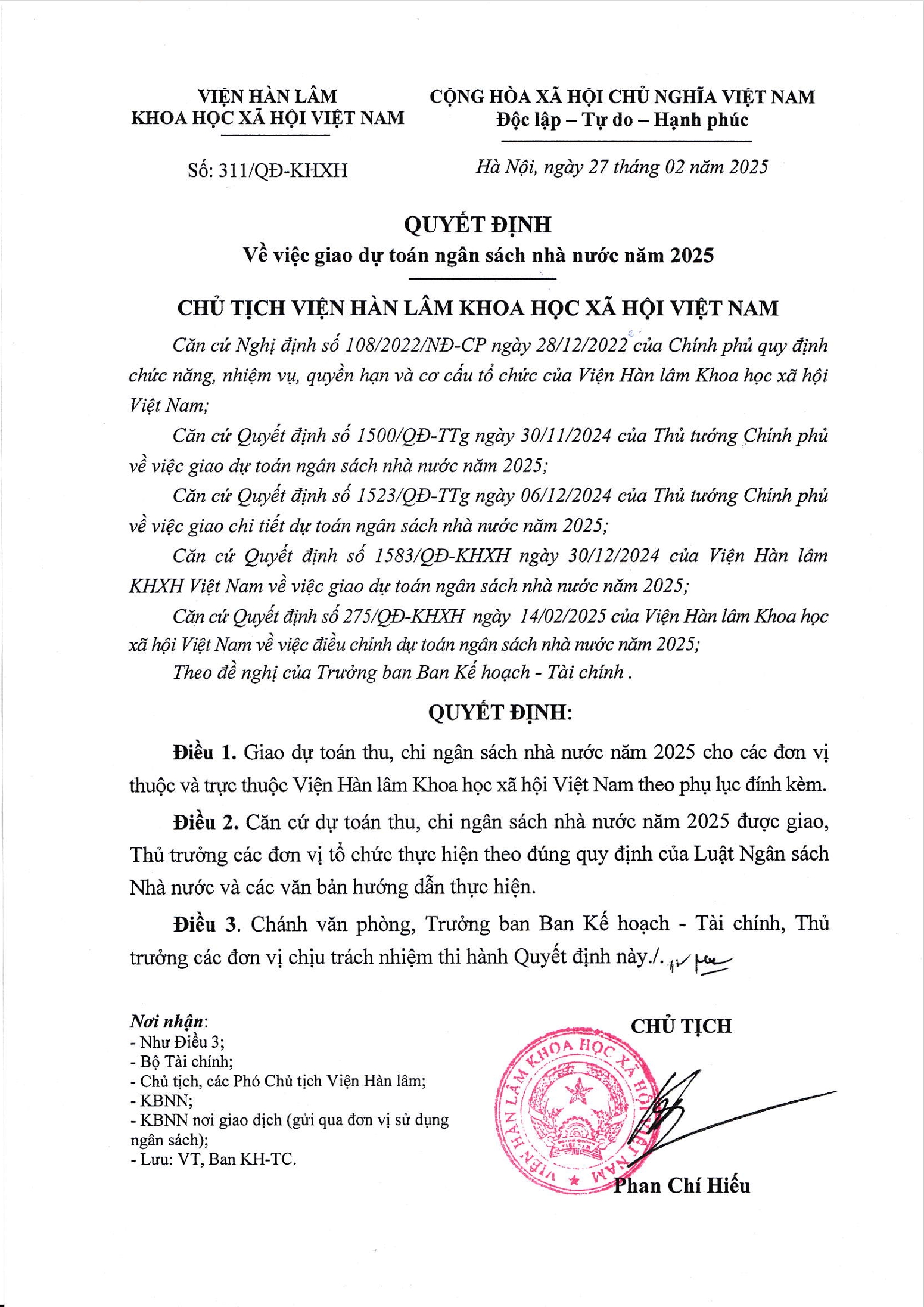 Quyết định ngày 13/03/2025 v/v công khai dự toán NSNN năm 2025 của Viện Nghiên cứu Văn hóa