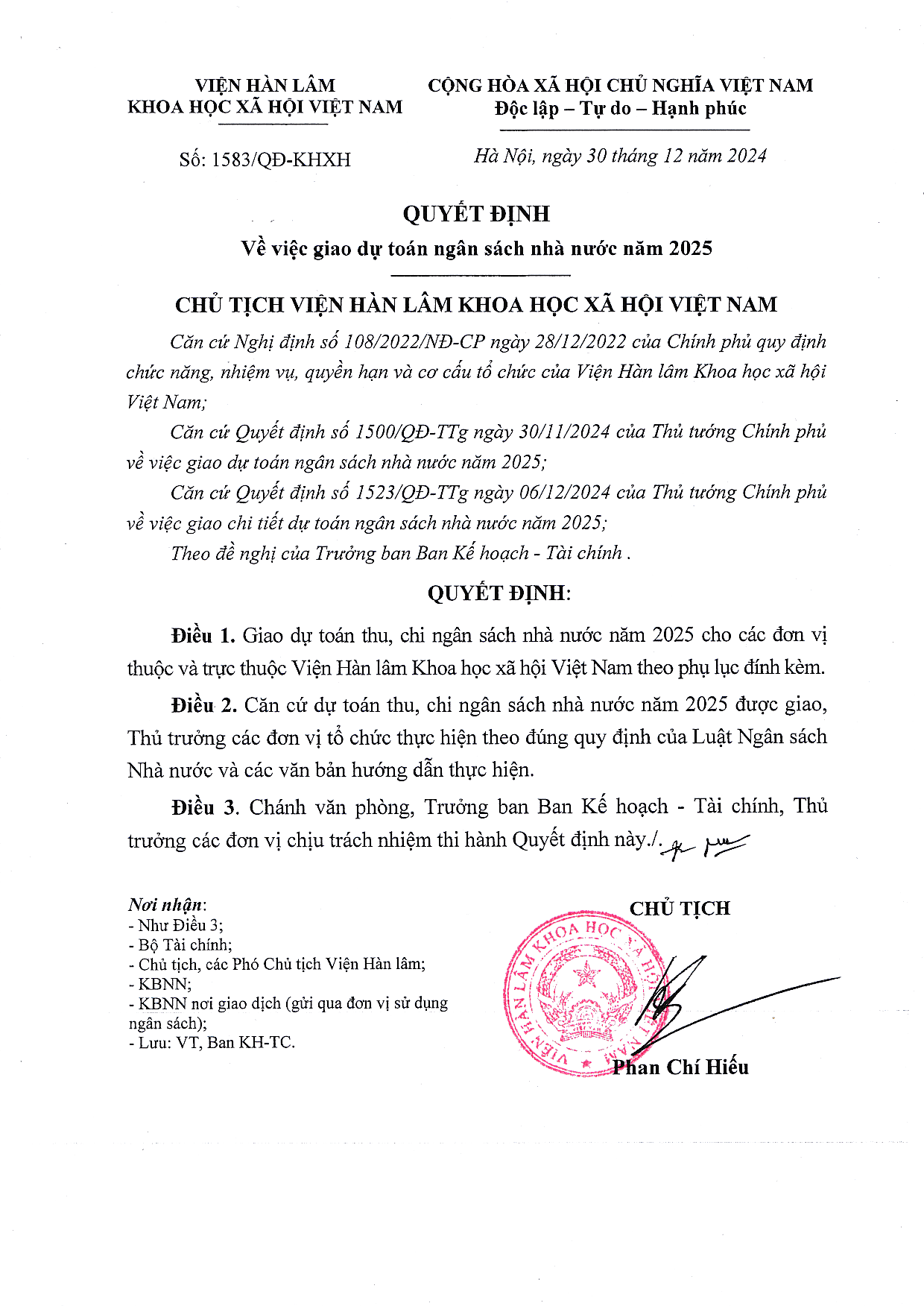 Quyết định ngày 13/03/2025 v/v công khai dự toán NSNN năm 2025 của Viện Nghiên cứu Văn hóa